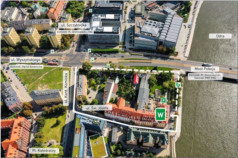 Jeśli planują Państwo dotrzeć do nas samochodem, a w nawigacji nie mogą odnaleźć naszego adresu, polecamy wpisać adres ul. Kardynała Bolesława Kominka. Zaznaczyliśmy ją na mapie.